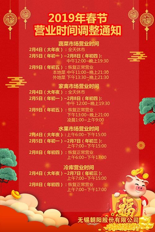 为确保市场供应,朝阳农产品大市场春节期间营业时间作如下调整:
