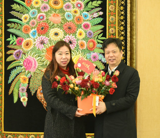 现场,吴局代表市农业农村局,向集团董事长张君君送上一盆鲜花,借此祝福朝阳集团全体干部职工新春快乐!张董表示由衷感谢,并向市局领导汇报了2021年的经营业绩和2022年任务目标。双方还就无锡市农业用地、蔬菜基地建设等情况进行了沟通交流。吴局表示,政府部门将发挥服务职能,扶持朝阳集团做好“菜篮子”工程的发展建设。瑞雪兆丰年,吴局还向雨雪天气坚守在一线的朝阳员工致以诚挚的问候。