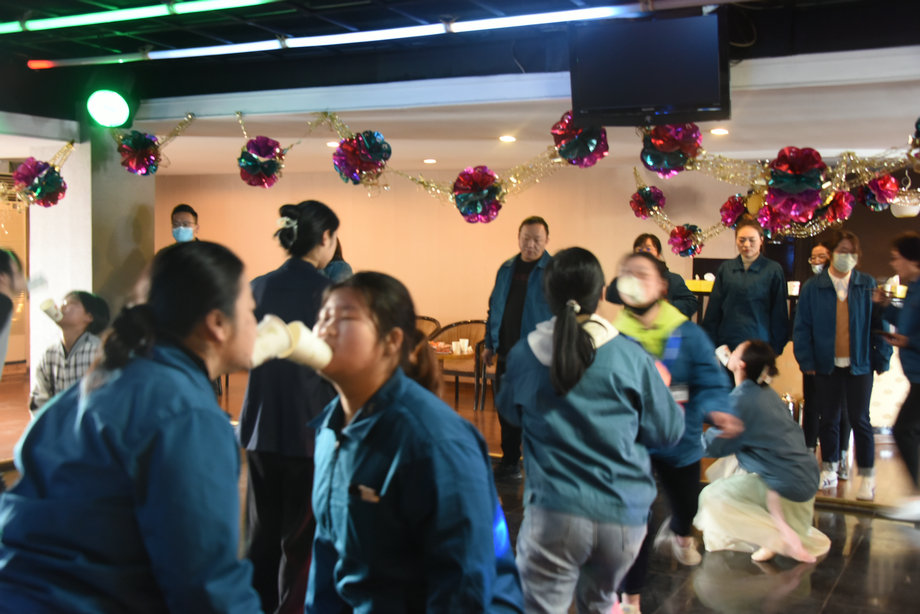 接着,活动进入“快乐的你”环节。参加活动的人员临时组队,分成6组,每组6人。游戏环节共有“纸杯传乒乓球接力赛”、“摇一摇呼啦圈”、和“趾压板你来我往”三个项目,由两两组别之间进行PK,既考验了团队协作配合能力,又体现出个人竞技比拼能力。游戏过程中还穿插了才艺表演节目,有小合唱、国风舞蹈、爵士舞、手语舞等表演,展现出朝阳女神才华横溢的另一面。整场活动既有严肃紧张的PK时刻,也有在节目音乐声中的身心放松,现场时不时爆发出欢笑声和掌声。